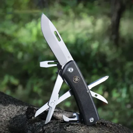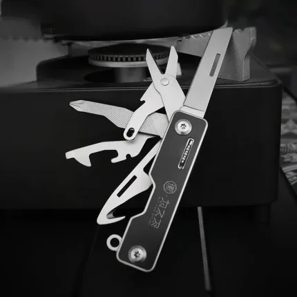 The Ultimate 9-in-1 Survival Multitool for Outdoor & Emergency Use. Featuring Foldable Knife, Spring Scissors, Tungsten Glass Breaker, Saw, Bottle Opener.